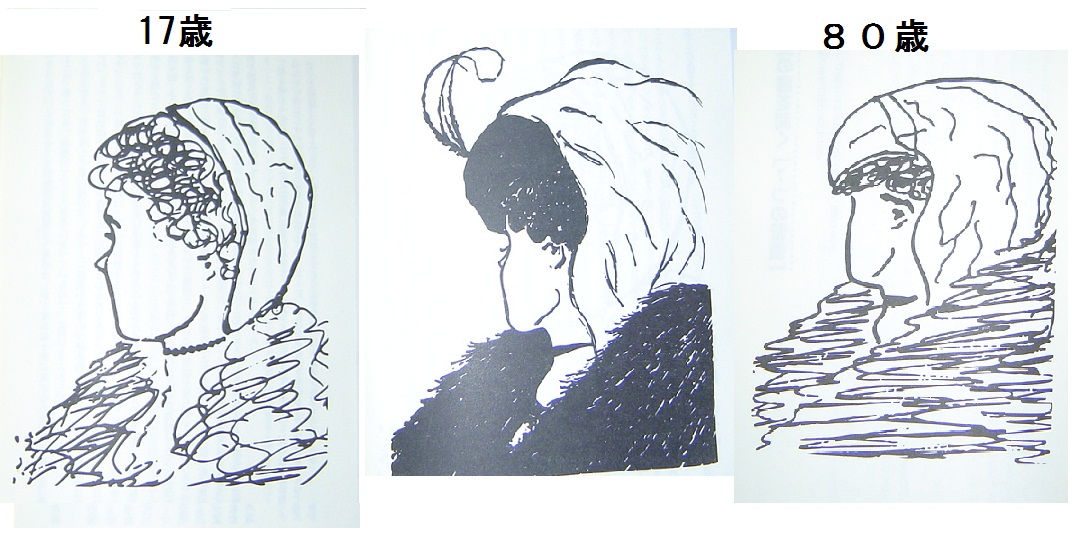 この実験に参加した人達は、みんな同じ絵を見ているのですが、一方は17歳だと思い、もう一方は80歳に見えてしまいました では、正解はなにか? 正解はほとんどの人が思いつかない、難しいものです 最後に書きますので、考えてください